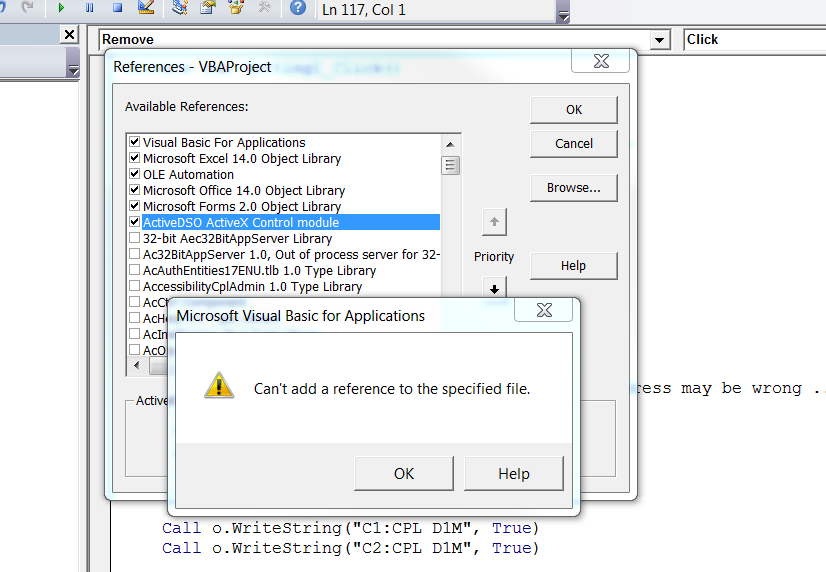 I am trying to make a reference to *.dll files you provided to control dln-4s board in Excel VBA. However, when I make a reference using Add Reference window, I am getting this error message.